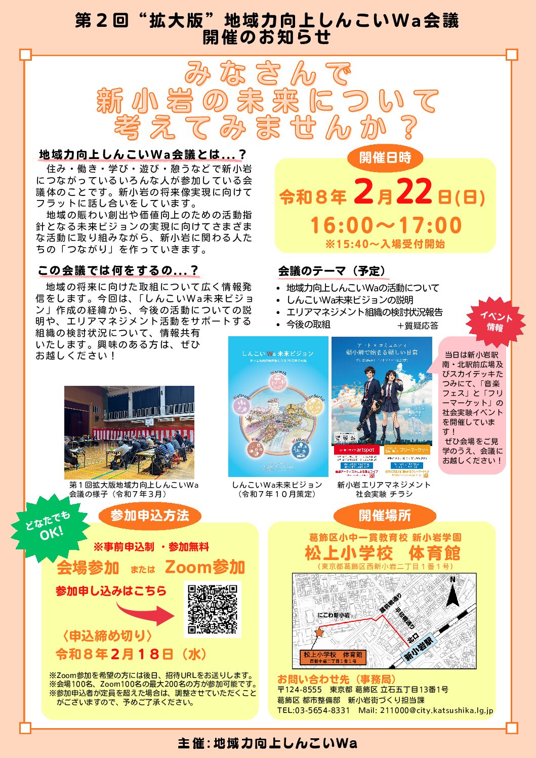 新小岩地域エリアマネジメント社会実験 ■開催日時・場所■路上ライブ2026-1-31(土)11時〜20時2026-2-22(日)12時〜20時 新小岩駅南口駅前 […]