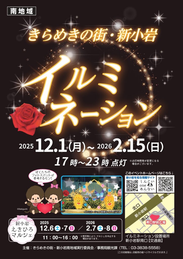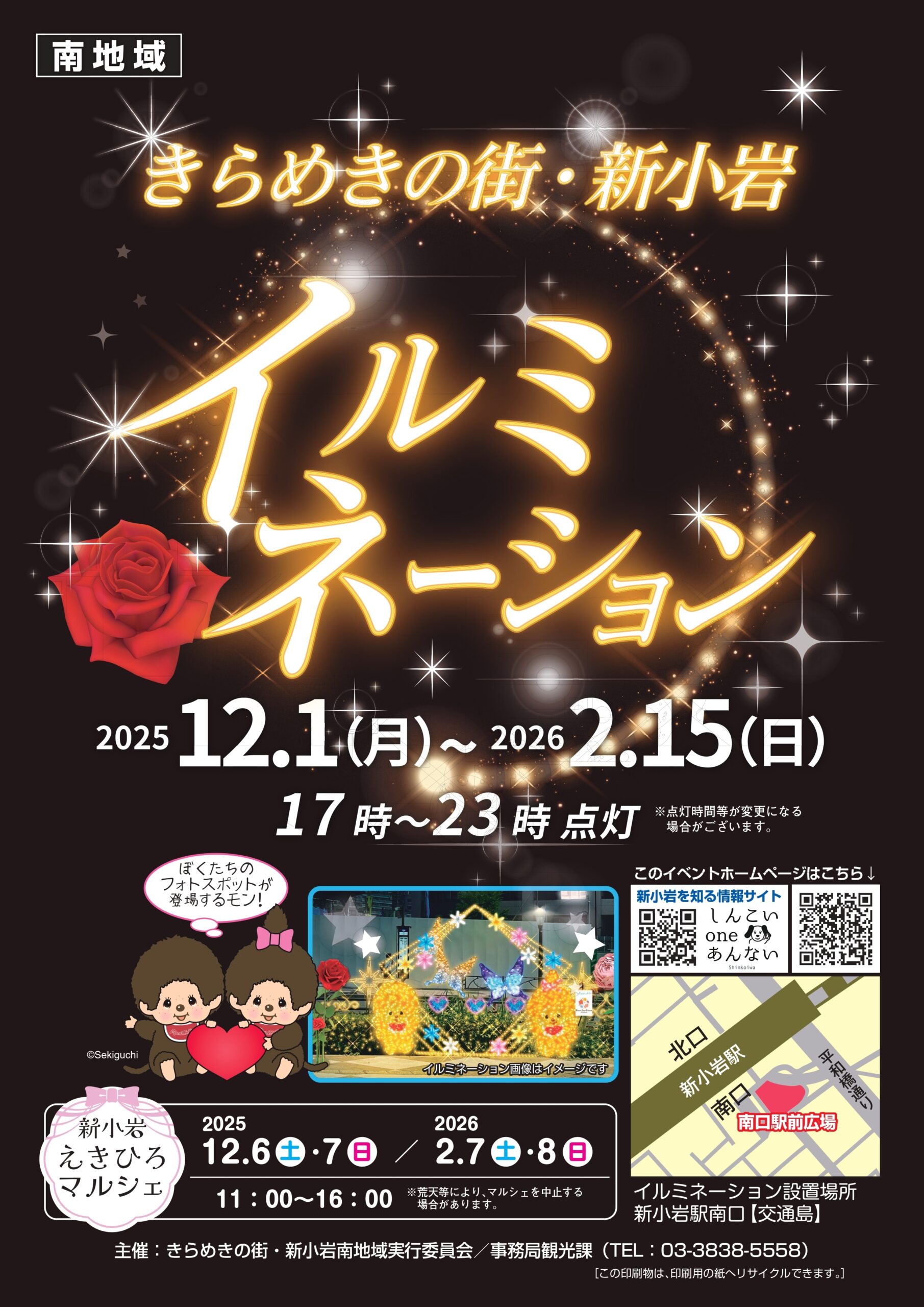 イルミネーションで新小岩駅南口周辺を彩ります。